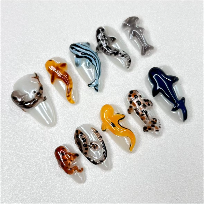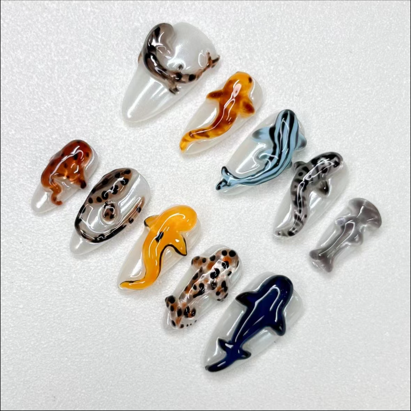 The meticulously crafted sharks are lifelike and soar happily and freely in the ocean